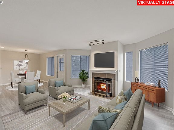 Single level ground floor condo. No stairs. Mountain/territorial views with cozy wood fireplace. 2 blocks from 128 acre Mary S Young Park. Kitchen with new quartz countertops, marble backsplash SS appliances, New laminate flooring in living room, dining, bathrooms, and carpet in bedrooms. New quartz counters in bathrooms, new paint every surface. Deck includes storage. Pet friendly. Deeded carport. Convenient to shopping, park, bus line, coffee, grocery, dining, on bus line. easy access I-205.