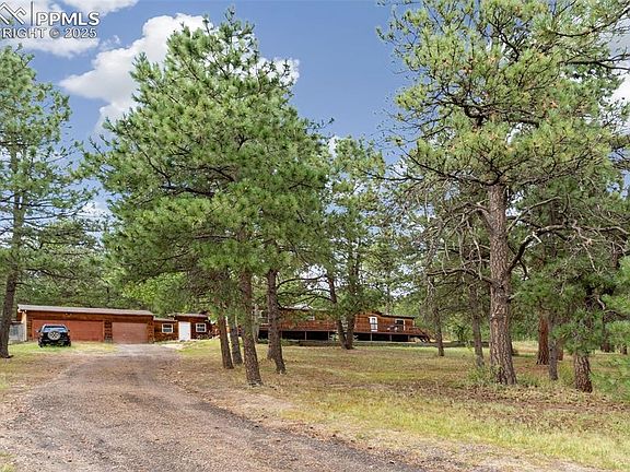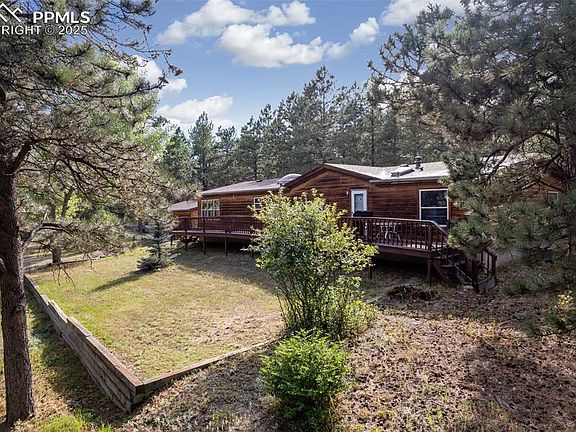 Welcome home to your own personal hideaway retreat. For those who want out of hectic city life & into a life of tranquility surrounded by nature, this lovely piece of property is waiting to welcome you home. Sit on the large front deck & soak in the views of your gorgeous & expansive front yard, perfect flat land for whatever you can dream up... play area for the kids, mega toy storage for the kids at heart, build whatever you have always envisioned. The home is nestled among ponderosa pine, spruce & cedars to give that all alone in the world feel, kind of like camping but better! This beautiful home features 3 bedrooms/3 bathrooms, with 2 living room areas & a large inviting centrally located kitchen. Enjoy chilly Colorado evenings warming by the wood burning fireplace. Breathe in the crisp Colorado air while hiking your very own property, all 39 acres of it! The breezeway/mudroom is a bonus feature that keeps you dry & safe as you come and go from the home & attached 3 car garage. Currently in the garage are three indoor/outdoor kennels for your beloved furry friends to stay warm & dry. Also on the property are 3 more covered parking spaces with tons of extra room for storage. This can be converted back to horse stalls or used as is. Park your cars & toys or make a home for your horses, whatever your heart desires. Included on the property is an additional 870 sq ft single wide 2 bed/2 bath home with a fully fenced rear yard, even has a separate address. The main home and the additional unit have separate septic systems with a shared well. New roof on both homes 2021.