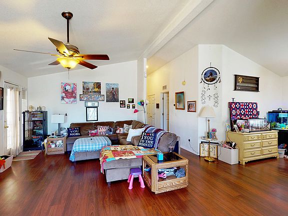 Canyon View Estates is a guarded, gated community just off Soledad Canyon Road. This home is one of the few that feature 4 bedrooms and 2 full bathrooms. Wood laminate floors throughout with carpet in the bedrooms. Large, open living room with access to backyard. Formal dining room with a convenient breakfast bar is great for those early morning breakfasts. Vaulted ceilings and open floor plan means you'll never feel cramped, and it has plenty of room to spare. With 4 bedrooms, the possibilities are endless. Convert the 4th bedroom to an office or a game room for the kids. No neighbors to the rear means quiet time in your backyard. Canyon View Estates features a Community Clubhouse, pools, spas, and a 24 hour Guard Shack. There are plenty of hiking and walking trails nearby and shopping centers are minutes away. A short drive and you're in Valencia, home to amusement parks and a wide variety of shopping areas.