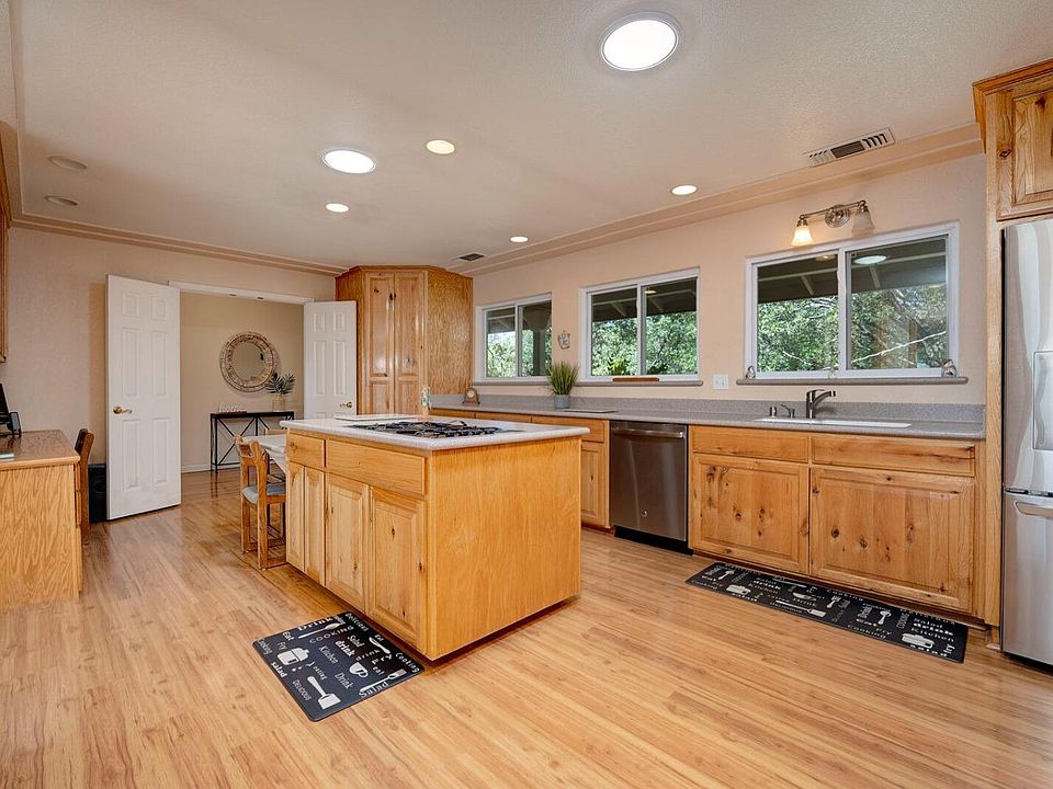 - Features: Pantry Closet, Skylight(s), Kitchen Island, Island w/Sink, Synthetic Counter