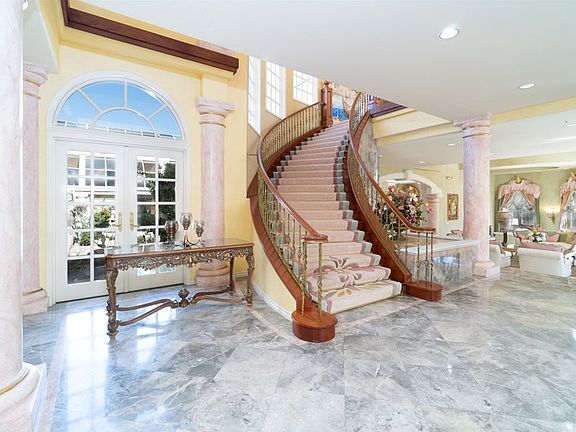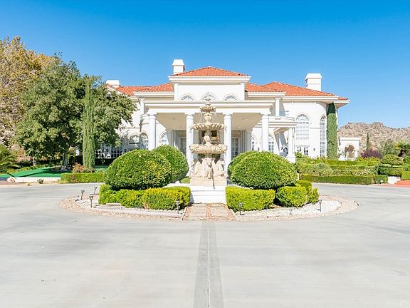 They say a picture is worth 1000 words,in that case I would need a Sunday time news paper to describe this home... ONE OF THE MOST AMAZING HOMES IN Apple Valley.OVER 10,000 SQUARE FEET OF ULTRA CUSTOM CONSTRUCTION AND LUXURY! Incredible landscaped grounds and large security gate in the front of the home. Very large portico and beautiful fountain welcome visitors. Parking for over 100 vehicles, all concrete and brick. The home is an architectural wonder, ALL built with steel and concrete construction-NO wood framing. Situated on 5 acres, it includes an indoor pool, outdoor atrium with a hot water spa, and a cool water spa with fountains. In addition to the 4 bedrooms and 7 baths there are large living and family areas for entertaining. Sweeping staircase to the second story, each bedroom has an en suite bath and walk in closets. Office, theater, gym room overlooking the pool. Waterfall into the pool with rockscape from the Master bedroom sitting area. Incredible chandeliers throughout the home. Marble, tile, custom woven inlay carpeting, floor to ceiling custom & silk window coverings. Balconies, custom curved glass ceilings, custom wall paintings. The owner has recently installed a water well for all of the landscaping and full array of solar panels for electric. ALL PAID FOR! The property is fully alarmed (including laser) and fenced for security. This is truly a High Desert Estate for the most discriminating buyer! Furnishings included!