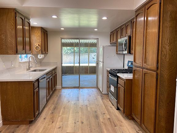 Welcome to this charming 4 bedroom, 2.5 bath home located in the desirable neighborhood of Winnetka. Enter into an open/large living & dining area with direct patio access that connects to a bonus room that makes a great work-from-home space. The kitchen features a new stove & dishwasher and connects to the enclosed/screened patio area & an additional covered patio, all surrounded by a fenced/private backyard. Upstairs is a primary bedroom with a vaulted ceiling, en-suite bath & walk-in closets. There are 3 additional bedrooms with closets, a full hall bath and hallway closet built-ins. There is an additional half bath downstairs located next to the laundry area with washer & dryer. Central AC/heat to keep you comfortable year round. The two-car garage provides ample parking & storage space with additional parking in the driveway. A gardener is included to maintain the landscaping surrounding the property. Don't miss out on the opportunity to make this house your home!