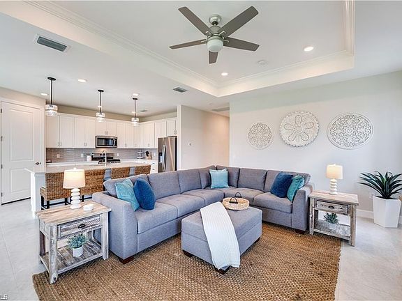 Available July-December 2025 for $3990/mo. Don't miss out on this nearly new, turnkey furnished, 3 bedroom plus den Pulte "Mystique" in the highly sought after resort style community of Verdana Village. This community features an INDOOR SPORTS COMPLEX w/indoor Pickleball, tennis & basketball! The amenities also include a FULL SERVICE RESTAURANT & CRAFT COCKTAIL LOUNGE, a cafe, state of the art fitness center, community pool, outdoor tennis and Pickleball, & dog park! Plus ride your bike to the BRAND NEW PUBLIX PLAZA FEATURING DUNKIN DONUTS, NY PIZZA & PASTA, a NAIL SALON and more! This rental home features a master bedroom w/KING sized bed & walk in closet, dual vanity sinks and frameless glass shower. The two additional bedrooms, one w/a queen sized bed & the other with two twin sized beds, allow for the home to comfortably sleep up to 6 people. There is also a separate den/office with a desk in case you need to connect with the office during your stay. The homeowners have taken great care to make your stay comfortable including towels, linens, a hair dryer, iron and ironing board, appliances, plates, glasses, silverware and more. Also for your convenience, all utilities plus cable and Wi-Fi are included in the rental price! Just pack your suitcase and come enjoy this beautiful home in paradise!