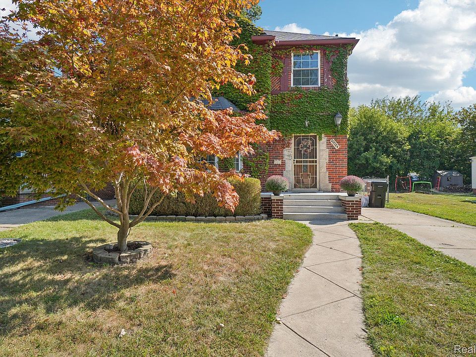 Welcome to this 3-bedroom, 1.5-bathroom brick Colonial in Detroit’s sought-after Green Acres subdivision. Hardwood floors run throughout the home, complementing a spacious living room with a wood-burning fireplace, a dining area, and an updated kitchen with a breakfast bar, granite countertops, and stainless steel appliances. A converted 3-seasons porch now serves as a versatile bonus room, perfect for additional living space. Upstairs are three sizable bedrooms, including a primary with new carpeting (2025) and a back bedroom featuring a walk-in cedar closet with hidden storage. The full bathroom was completely remodeled in 2024 with modern finishes. The basement includes a laundry station added in 2025, washer and dryer replaced in 2024, an extra storage room, and recent upgrades such as sump pump and waterproofing (2025). Additional improvements include a new hot water heater and tank (2025) and full conversion to PEX plumbing (2025). Outside, the fenced backyard with raised garden beds creates a perfect setting for entertaining or relaxing. This well-maintained home combines classic character with thoughtful updates, making it truly move-in ready.