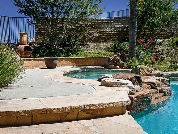 This Extremely rare, Highly Upgraded, Wood Crest Pool Home can be Yours! It is Every Buyer's Dream Home! Move In Ready, Amazing Attention to Detail and Turn Key. From the minute you walk through the Stunning, Etched Glass Front Door you are impressed with the Workmanship and Elegance of the home. Dark, Rich Hardwood Floors, Granite Counter Tops, Stone Backsplash, Maple Cabinets, Stainless Steel Appliances (fridge is included!), Plantation Shutters and French Doors leading out to the White Painted Aluminum and Maintenance Free Patio Cover. Located at the end of a Cul De Sac and walking distance to Plum Canyon School, all of your needs are met. Enjoy your own Private Oasis with Lush Green Vegetation and Beautiful Flowers surrounding your own Private Pool and Jacuzzi. Your pool equipment is housed in a permanent storage building on the side of the house with room for all of life's extras. Come and Experience Perfection!