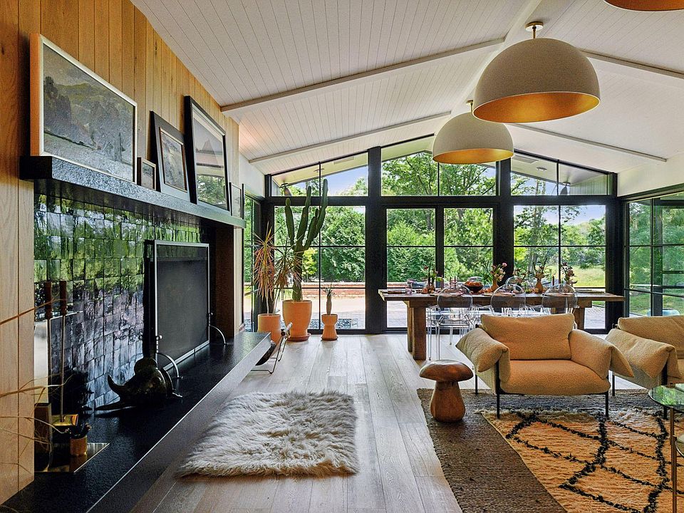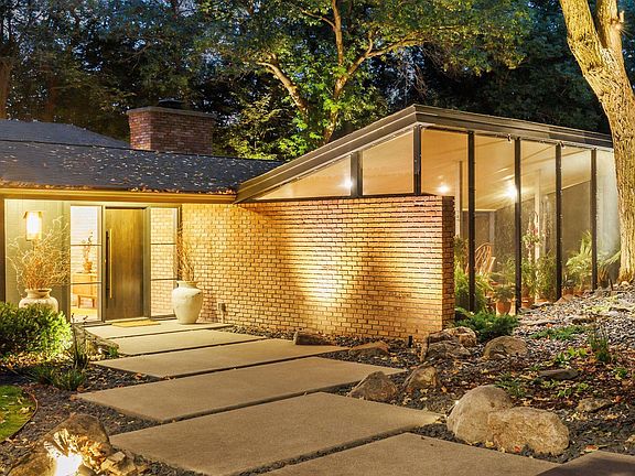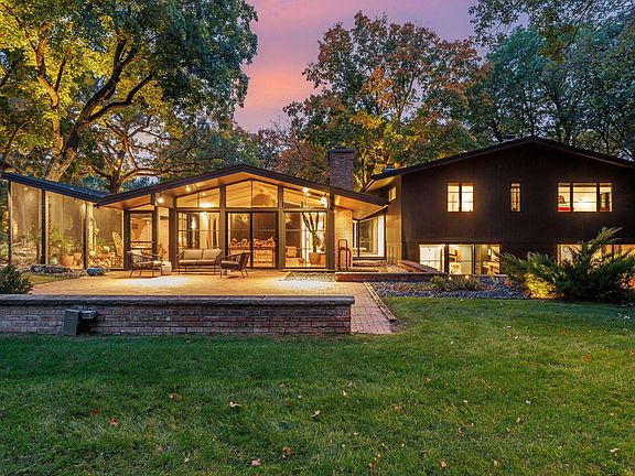 Perched on a private hilltop east of Excelsior, 20025 Manor Road has embraced its breathtaking setting since 1964. Designed around the contours of the land, the sprawling layout embraces the various nature views from well beyond the two-acre site. The low-profile design slowly presents itself as you crest the hill, and never truly hints at the volume of the interior spaces. Dominated by a long horizontal roof line with deep eaves, the home appears to simply be a mid-century rambler, until you find the separate wings tucked behind each end. The sculpted walkway to the front door meets a central brick wall, defining the entry while giving privacy to the dramatic screen porch on the Southeast corner. This screen porch integrates with the living room and highlights the designer's intention of indoor / outdoor living, which continues throughout the property. A new pool and cabana grace the west side of the property while brick patios, deck and lower fire pit area give direct access to the outdoors from the central rooms and primary suite zone, respectively.