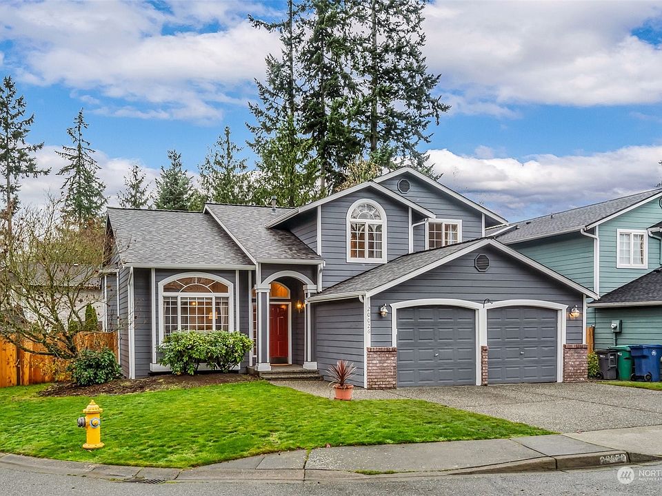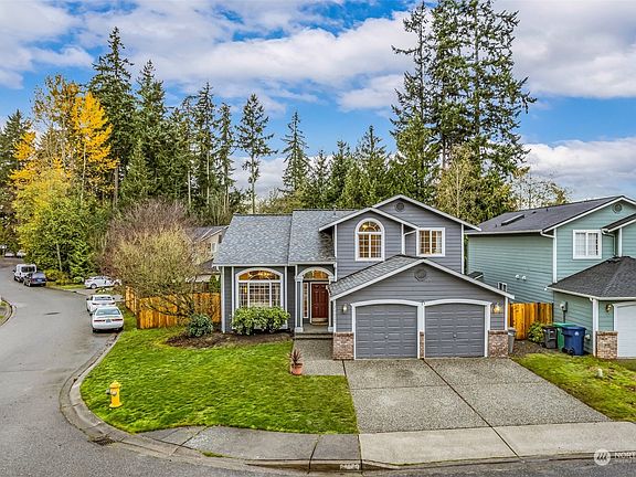Beautifully maintained 4-bed home on a corner lot. Newer roof, new carpet, fresh fence + a newer, expansive $25K composite deck set the stage for comfort and style. Main floor features formal living/dining and a bright kitchen with 2 year old stainless appliances, skylight, garden window, undercabinet lighting + quartz counters. Lower level features a spacious family room w/surround sound and gas fp just steps from versatile bedroom/den and 3/4 bath. Upstairs find 3 more beds incl a tastefully refreshed primary with ensuite + WIC. Revel in community trails, playground, large 2 car garage, and a fully fenced yard. Exceptional Northshore Schools. Modern amenities, thoughtful layout and prime location make this home a standout choice.
