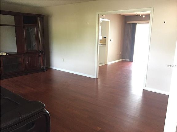This home has a great floorplan and is located in a very nice, established neighborhood. Impressive tropical plantings with a fenced back yard (PVC fencing installed in 2013). Lawn has irrigation from a well plus a circular driveway. Combination of easy-care laminate and ceramic tile flooring throughout the interior of the home. There is a built-in hutch in the foyer plus a built-in dry bar in the family /dining room. Enjoy your refreshing, large pool with screened enclosure. Other covered outdoor areas as well. Pool is in good shape. This could be a fabulous home with some minor remodeling and a new roof. Property is being sold "as-is" and is priced accordingly. Please allow 3 days for Seller response to offers.