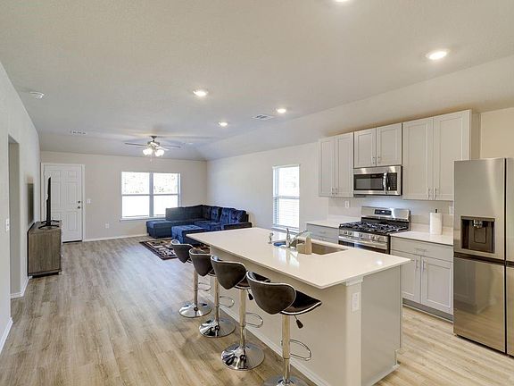 Open-concept floor planLarge windowsSleek countertopsPlenty of cabinet spaceConvenient breakfast bar