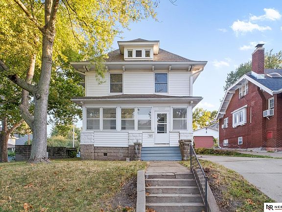Come see this beautiful 2.5-Story home built in 1908. This home features 5 bedrooms, 3 baths and it sits on a large corner lot with a ton of character and original woodwork.  This home features an elongated driveway with 2 access points for entrance and a one car detached garage. There are three entrances to the home and bonus features include an oversized front porch and sun room on the second floor.  Inside this warm home are hardwood floors, taller ceilings and natural light throughout. The kitchen features a large walk-in pantry and hidden staircase to access the second floor. Home is conveniently located near Omaha's Henry Doorly Zoo and Aquarium, Lauren Gardens/ Kenefick Park, Spring Lake Golf Course and Interstate access. All measurements approximate. Taxes are currently exempt, taxes should be independently verified for estimating. Agent has equity.