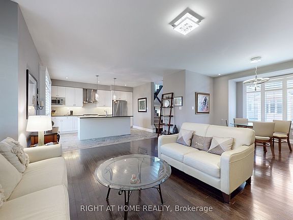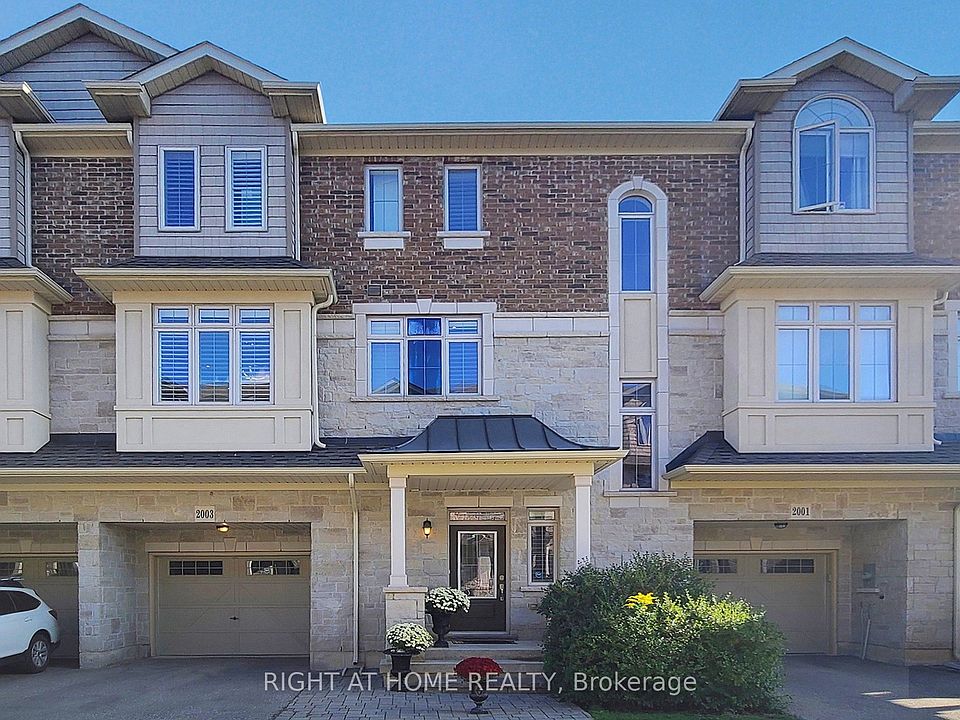 Welcome to Bronte Park Town Manors, a prestigious enclave of only 20 executive townhomes by renowned builder Markay Homes, ideally situated steps from Bronte Provincial Park and surrounded by the scenic trails, woods, and waters of 14 Mile Creek in the sought-after Bronte Creek community. This stunning Parklane model, the largest in the complex, offers approximately 2,345 sq. ft. of luxurious living space across three well-designed levels. The ground floor features a spacious custom foyer with inside access to the garage and backyard, along with a versatile fourth bedroom and 3-piece bath, perfect for guests or a home office. The main level boasts a bright, open-concept layout with 9 ceilings, California shutters, dark hardwood floors, convenient main-floor laundry and a solid oak staircase with wrought-iron pickets. At its heart is a gourmet kitchen with upgraded cabinetry, Stone countertops, designer backsplash, an oversized center island with breakfast bar, and premium stainless steel appliances, seamlessly connected to a refined dining area and a sun-filled living room with floating fireplace, plus walkout to a raised deck with tranquil treed views. Upstairs, youll find three generous bedrooms including a primary suite with walk-in closet and upgraded spa-like ensuite featuring a glass shower and stone counters, complemented by another full bathroom. The fully finished lower level extends the living space with a large recreation area, 2PC Washroom and cold cellar. Complete with a private backyard, garage access to the yard, and an unbeatable location close to schools, shopping, Starbucks, groceries, hospital, GO Transit, and major highways including 407, 403, QEW, and Dundas, this home offers the perfect balance of modern luxury, comfort, and conveniencetruly a must-see property.