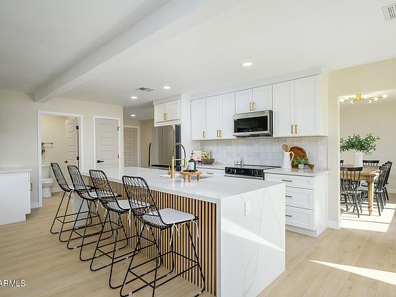 Welcome home to your remodeled 4 bedroom 2 bath home in Tempe's desirable Optimist Park neighborhood. Featuring a stunning kitchen with shaker, soft close cabinetry, quartz countertops w/ waterfall edge, matte gold hardware & stainless steel appliances. Open concept into your family room featuring the cozy white washed brick fireplace & wood mantel. Master bathroom beautifully appointed with separate soaking tub & shower w/gorgeous tile, custom glass enclosure, double vanity and matte gold plumbing fixtures & hardware. Spacious walk in closet in master. Luxury vinyl plank flooring throughout. New interior doors, 5'' baseboards & hardware. All new interior & exterior light fixtures. Dual pane windows. Enjoy relaxing & entertaining in your backyard w/ covered patio and large grass area.