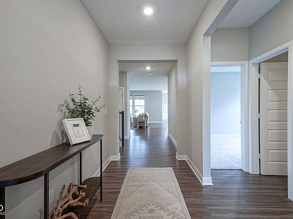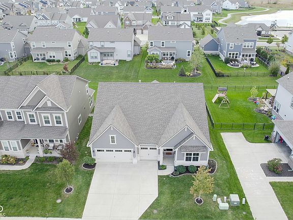 This stunning ranch home offers 3 bedrooms, 3 full baths, and a bonus upper-level room, all beautifully arranged in an open layout that feels fresh and inviting with new carpet and paint throughout. Located in the sought-after Liberty Ridge subdivision in Westfield, this home offers a 3-car garage leading into a practical mudroom with built-in locker-style storage. Enjoy the modern kitchen with white cabinetry, a spacious quartz island, and a bright dining area for gatherings. The primary suite, privately situated on one side of the home, features a tray ceiling, tiled shower with a bench, double vanities, and a walk-in closet. Two additional bedrooms are conveniently located near a full bathroom. The upper-level bonus room, complete with a full bath, provides a perfect space for entertainment or relaxation. The 3 seasons porch will quickly become one of your favorite places to unwind! Luxury finishes like 9' and 11' ceilings, an irrigation system, remote-controlled shades, and Smart Home technology, including a Ring camera and keyless entry, enhance both style and functionality. You'll also enjoy a water softener, reverse osmosis system, and security features. Outside, residents have access to a community pool, playground, and scenic walking trails, offering endless leisure options. Nestled on the border of Westfield and Carmel, this home provides a perfect blend of luxury and location. Make it yours today!