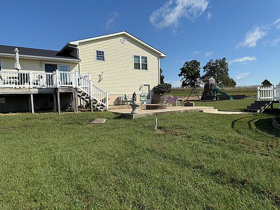"Need space for a growing family? Look no further than this 3 bedroom, 2-bath, 2456 square, tri-level house, located on 2 acres just 3 miles from the Madison County courthouse. Hardwood floors begin in the foyer and extend into the the living room, dining room, and the stairs that lead to the other two levels. The kitchen boasts beautiful granite countertops and marble floor. French doors open to a 10' x 30' deck that offers a beautiful view. Upstairs are 3 roomy bedrooms and 2 baths. The master has a walk-in closet and an ensuite with tile shower. The other full bath has an oversize jacuzzi tub. Downstairs is a large family room with tile floor, a possible 4th bedroom, and laundry room. This level has a walkout to the beautiful outdoor living. A large patio with fire pit provides enough seating room for everyone. A children's play area has a large, rubber mulch surface that holds the large wooden play set. To complete the outdoor fun is a 27-ft. above ground pool with new deck. Built in 1991, the home was completely remodeled in 2009 and the roof was replaced in 2024. Central air and propane gas heat keep you comfortable year around. The 720 sq. ft. attached garage provides plenty of parking and storage space."