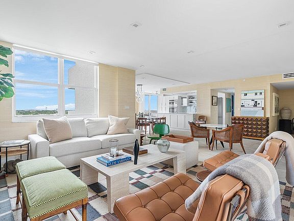 Welcome to luxurious living at its finest on the coast of Boca Raton. This beautifully renovated 1,736-square-foot condo at 2003 N Ocean Blvd offers an exceptional blend of sophisticated contemporary elegance. With 2 spacious bedrooms and 2 exquisite bathrooms, this residence is designed for comfort and style.Step into a space where every detail has been thoughtfully considered. The open layout boasts porcelain tile floors, complemented by recessed lighting that creates a warm and inviting atmosphere. Serena & Lilly grasscloth wallpaper ties the space together.The elegant kitchen is equipped with natural stone countertops, custom cabinetry, Aquabrass faucet, dual temperature wine refrigerator, GE profile induction cooktop, a wall combo oven/microwave, and a Bosch dishwasher perfect for culinary enthusiasts.