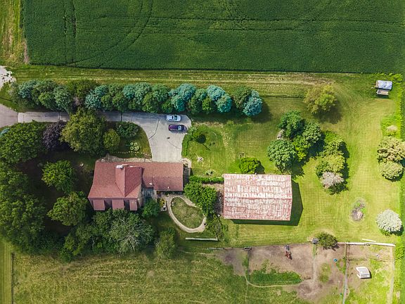 Private ag-zoned 4 acres in Dry Grove Township. Five minutes to Elementary, Jr and Sr High Schools, close to Heartland College, ISU, Rivian, I-74 and I-39. Natural gas supply. Farmhouse was expanded and rehabbed in 1970. Recent updates include: hardwood flooring, siding, roof, well and septic system. Home features 3 bedrooms, 2 baths, large eat-in kitchen and 2 large living spaces on the main level. 3 bedrooms and bath on second level. Convenient 14x7 mud room off attached 2 car garage. Basement with finished family room with dry bar and fridge. Wonderful front screened porch 21 x 10 and 14 x 21 deck of back slider door. Don't miss the small appliance garages built-in to kitchen cabinetry plus pantry just outside mud room door. 40 x 60 multi-use shed with 2 large stalls, stairs to partial loft, and two 14 ft doors plus livestock door. 2+ acres fenced pasture. Lots of space for gardens, fruit trees and additional buildings. Make this your personal private retreat.