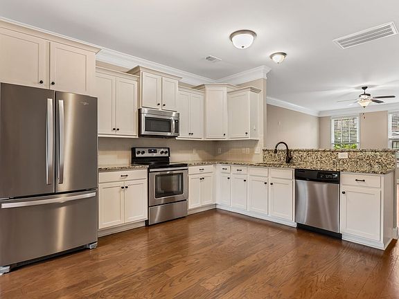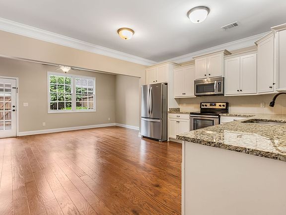 Beautiful 3 bed, 2 1/2 bath all brick townhome in highly sought Berry Farms! Hardwoods throughout, granite countertops, SS appliances and large open concept living space with lots of natural light! Built ins and tons of storage, whole house water filtration, outdoor shed, new fridge and washer/dryer can remain. Enjoy outdoor gatherings or peaceful mornings in the charming courtyard, perfect for entertaining guests or savoring a cup of coffee in solitude. The attached carport ensures ease and accessibility. Berry farms is a self contained walkable community with grocery, shopping, restaurants, parks, and resort style amenities! Less than a mile from interstate access. Owner will do a 9 month at $3000.