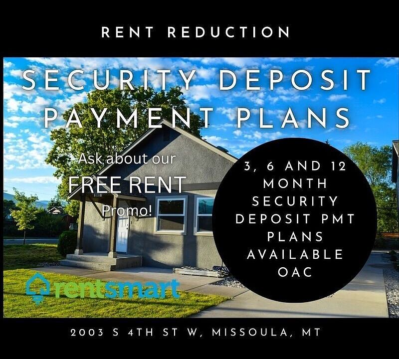 Rent Smart Property Management is proud to be the first PM in Missoula offering the renter community a reduced barrier of entry in securing your next home. We have partnered up with a 3rd party vendor who offers 3, 6, 9 or 12 month payment plans on your security deposit. Secure your new home with a fraction of the move in fees! Upon application approval and acceptance of our lease terms, you will be sent a link to qualify for your payment terms. * Payments are made online directly to the vendor who will hold your deposit through the term of your lease and refund your balance due after you vacate in accordance with the MRLTA.