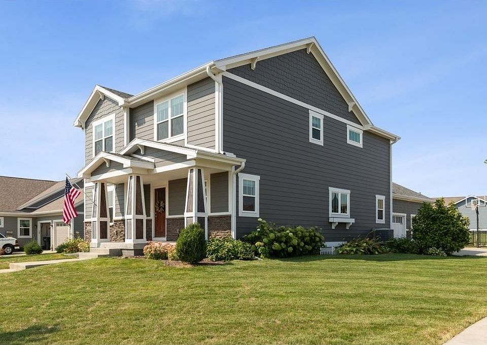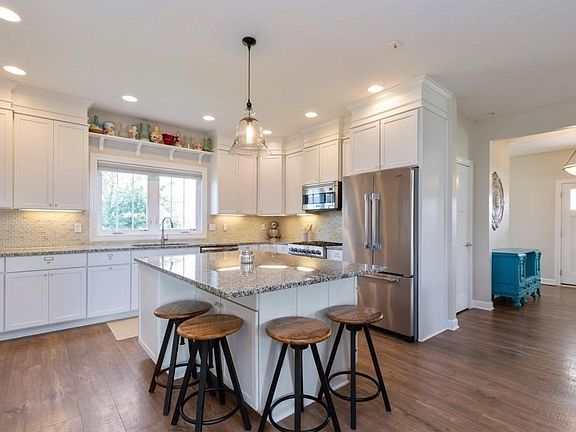 Beautiful Mapes resale in Prairie Trail. Kitchen features a large island, Viking appliances, soft close drawers, & wainscoting in the dining area. Three panel sliders lead to a covered deck with a large stamped concrete patio off for perfect entertainment. Main level features a beautiful home office w/additional storage cabinets. Upper level features 3 generous bedrooms, master suite w/marble shower, soaker tub, & large walk in closet. LL is finished with an additional bedroom, bathroom, & family room. This home features an oversized 24'X32' garage with a 300 sq ft bonus room above--perfect for additional storage. This home also has it's own private driveway (no alley) and a fully fenced in yard. Home is close to schools, parks, shopping, dining, & more.