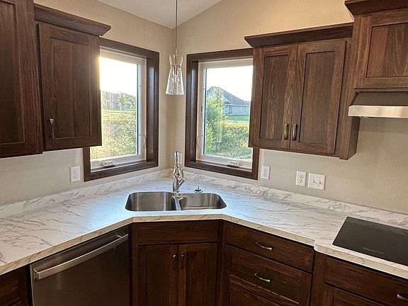 Custom built patio home by Woodland Homes featuring 2 bedrooms and a den, 2 bathrooms, and a generously sized 2 stall garage. Highlights include vaulted ceilings, custom poplar woodwork, corner kitchen pantry, walk in closet/safe room, in floor heat, rear patio, and covered front porch. Lot price, landscape package, and sprinkler system included.