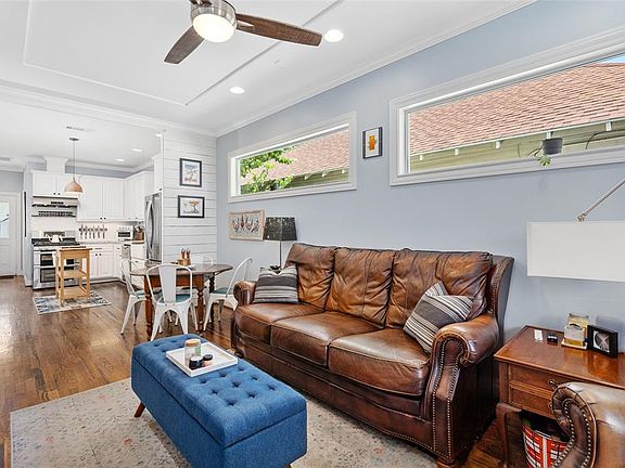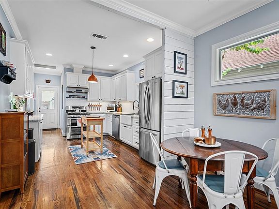 Located within 1st Wards Historic District & sitting directly across from the Hike & Bike Trail is an updated bungalow ready for its new owner. Step inside to find beautiful hardwoods & an inviting open living space filled w/ natural light. Leading past the dining area & into the updated kitchen, youll appreciate the finishes, functionality & storage throughout. The kitchen is equipped w/ a gas range, stone countertops, farm sink & under cabinet lighting. The primary bedroom features a spacious en-suite full bath & walk-in closet. Also located on the 1st floor is the second bedroom w/ access to a full bath directly across the hallway. The versatile bonus room on the 2nd floor is perfect for a home office, additional living room or 3rd bedroom. The large backyard has endless potential & is ready to fulfill your gardening dreams or outdoor entertaining ideas. Just minutes from Downtown and walking distance to shops, restaurants, & all the area has to offer!