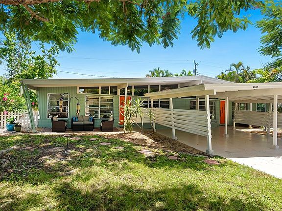 An updated jewel in the heart of Sarasota's historic South Gate neighborhood, this recently renovated and furnished bright home stands as a testament to the mid-century boom that shaped Sarasota. With two bedrooms, one bath and a separate enclosed sunroom/office with sliding glass doors should you need quiet while working, it has it all. Sunroom square footage not included in square footage under air. Lots of windows and skylights allow for natural light to pour inside. Three parking spots, large back patio with short fence and additional separate large 6-foot fenced-in area for large pets, and interior laundry room are all wonderful features. Positioned ideally, the location boasts more than just the city's dynamic arts scene, delectable eateries and beaches. Arlington Park is across Tuttle with public pool, tennis courts, basketball courts, playground, recreational facilities and large park with fountain. $2900/month August-October, $4700/mo November-December, $8000/mo January-April, $3500/mo May-July