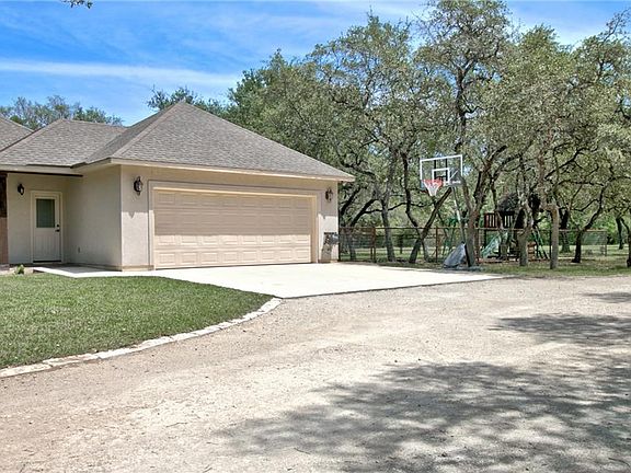 This stunning, quality custom, well maintained home nestled in the Hill Country of Spring Branch sits up high across the street from the Guadalupe River. Built in 2006, with 2405 sq ft of living space, 3 bedroom, 2.5 bathrooms, open concept floor plan with 9' ceilings, rock fireplace, office space, master with walk-in closet, double sinks, jet tub, separate shower, screened in back porch off master, all porches flooring is done in slate, Kitchen has stainless appliances, granite counter tops, walk-in pantry, built-in hutch. Half bath is large with extra large closet, laundry room / utility room is over-sized. Attached 2 car garage with plenty of parking, circle drive. Immediate backyard is piped fenced in, nice oak trees, fire pit, plenty of outdoor entertaining space, includes the kids jungle gym play set. Back field is cleared and has room for horses or FFA livestock . Side of the home is a separate office 12 x 24 office building, completely finished out, has windows and AC unit.
