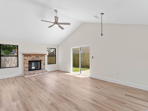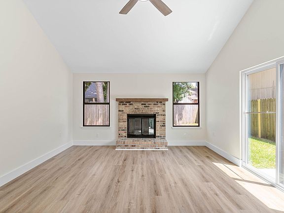 Move in ready! Gorgeous update includes all new LVP flooring, interior doors and hardware, cottage trim style 6'' baseboards and door casings, ceiling fans and fresh paint. Kitchen boasts all new stainless appliances, quartz countertops, porcelain tile floors and a spacious pantry closet for extra storage. Inviting great room offers a living and dining area with stunning vaulted ceilings, cozy fireplace and a sliding glass door to access outdoor patio. Master bedroom also features a sliding glass door to its own patio area. Master and full bathroom have new vanities, toilets and porcelain tile floors. Unwind in relaxing jetted tub in master bath. New exterior wood siding all along back of house and on the lower half on patio side of house. 3.7 miles to Hurlburt and 7.5 miles to Eglin AFB.