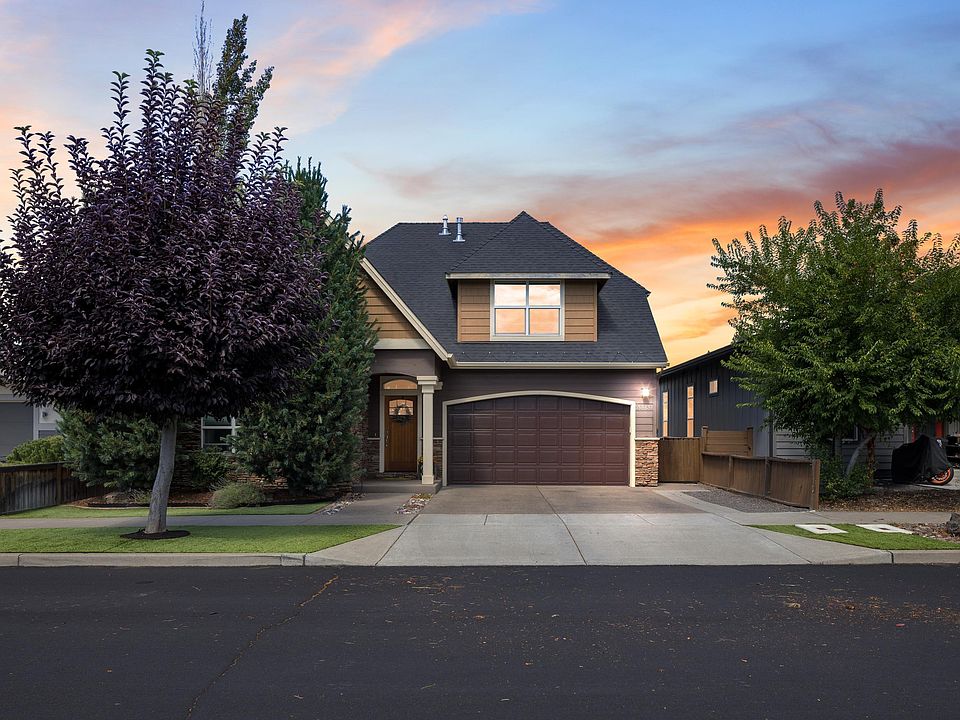 Located on a quiet cul-de-sac just steps from scenic trails and the Deschutes River, this beautifully crafted 4-bedroom, 2.5-bath home offers the perfect blend of style, comfort, and convenience. The custom Northwest Contemporary design features high vaulted ceilings, maple hardwood floors, and a striking waterfall granite island in the chef's kitchen. The primary suite is conveniently located on the main level and boasts an updated spa-like bathroom. Upstairs, a versatile bonus space offers endless possibilities—perfect for a media room, home office, or play area. Step outside to a professionally landscaped backyard oasis complete with a cozy firepit and a separate lower garden area—ideal for relaxing or entertaining. Just minutes from Blakely Park, the Old Mill District, and Downtown for shopping and concert-going, this home offers the best of Central Oregon living in a peaceful, private setting.