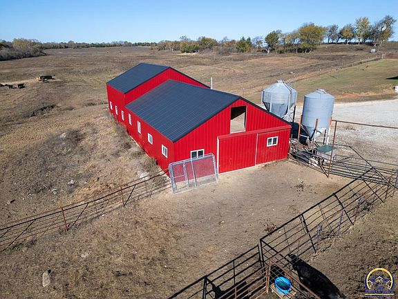 Escape to the wild side and live on your own terms with this rugged 50-acre off-grid farm in central Osage County—a true haven for outdoorsmen, hunters, and anyone craving independent, self-sustained living. Solid and practical, the 2020-built ranch-style home provides 1,200 square feet of finished space on the main floor, featuring 2 bedrooms and a full unfinished, walk-out basement for gear, storage, or your own custom setup. You’ll find an outhouse along with two running sinks supplied by your own private well, powered by your own privately owned windmill. There is also a gravity-fed holding tank for additional water. No modern grid, no nonsense - just the essentials you need to thrive independently. Step outside to a country view that never gets old: rolling pasture, timber, and a covered deck overlooking the southern landscape. The perimeter is fully fenced and includes separate paddocks for livestock husbandry and management. A pond provides water for animals and attracts game. The centerpiece for any livestock operation is the 2023-built, Amish-style barn—a blend of old-world tradition and modern functionality. The 30 X 70 barn consists of a spacious 10 ft hay loft with a classic hay door, 4 horse stalls, a tack/feed room, with 30X30 of the space utilized as a workshop area with a concrete floor. The shop area is also ideal for processing livestock and game. Flanking the barn are 6 pipe corrals, all connected with an alleyway between them. This barn is built for hard use season after season. Hunters will appreciate the thriving whitetail deer and turkey populations. Several quality bucks have been harvested here, and with 12 acres previously planted for feed crops, you’ll have everything you need to attract and sustain wildlife. Less than a quarter mile away, unlock 4,500+ acres of public hunting land surrounding Pomona Lake, with 4,000 acres of water for fishing, boating, and exploring. The 30-mile trail system is perfect for horseback riding or hiking untamed prairie and woodlands. This property is a rare find: peaceful, independent, and loaded with potential. Bring your livestock, bring your hunting gear, and bring your love of the land. You’re just 3.5 miles off Highway 75, 25 miles from Topeka/32 from Lawrence/63 from KC, but a world away from city living.