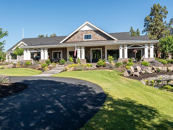 Premier home in Tumalo. Featuring 5 acres along the Deschutes River w/ 300ft+ frontage. Fish from your river bank or take a great float. 3.07 acres of Swalley water rights. Professionally landscaped w/creek & pond w/waterfall. Fenced in veg/fruit gardens-1 w/raised beds. Large barn including greenhouse, RV storage, loft & shop garage w/ 1/2 bath Welcoming covered front porch as you enter to your home. Vaulted ceilings in the living room. Dream kitchen with commercial 48'' Blue Star gas stove, Subzero, island, granite counters throughout the kitchen and custom leaded glass cabinets. Primary master suite offers french doors to the patio, double vanity, heated tile floors, double headed shower, soaking tub, & walk in closet w/ plenty of room. 3 more bds plus office, work space and large laundry/craft room. Dining room w/boxed ceilings. No detail overlooked. Oversized 3 car garage w/walk in shower, incredible storage. Paver patios for ease of care. An entertainers delight!