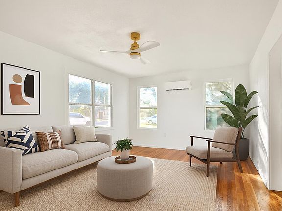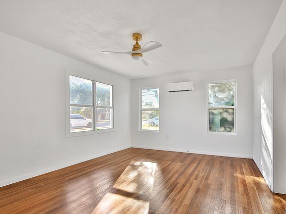 Completely updated interiorBeautiful hardwood floorsNewly installed split unitWhite subway tile backsplashNew navy blue cabinetsGold hardwareNavy blue exterior