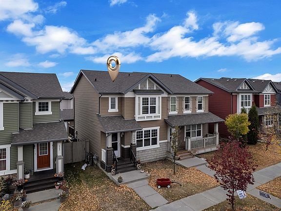 Welcome to this beautifully maintained duplex in the sought-after community of Laurel, featuring a finished basement with a second kitchen—perfect for extended family or added versatility. This home offers a seamless blend of comfort, style, and functionality. The main floor includes a spacious living room, modern kitchen with stainless steel appliances, extended granite island, ceiling-height cabinets, stylish backsplash, a bright dining area, and a convenient half bath. Upstairs, the primary bedroom features a walk-in closet and 3-piece ensuite, along with two additional bedrooms and a 4-piece main bath. The fully finished basement boasts a large bedroom, second kitchen, 4-piece bathroom, and cozy living area. Enjoy summer BBQs on the large deck and benefit from a double detached garage and central A/C for year-round comfort. Ideally located within walking distance to parks, trails, shopping, K–9 and high schools, the Rec Centre, and just steps from a bus stop—a perfect home for first-time buyers.