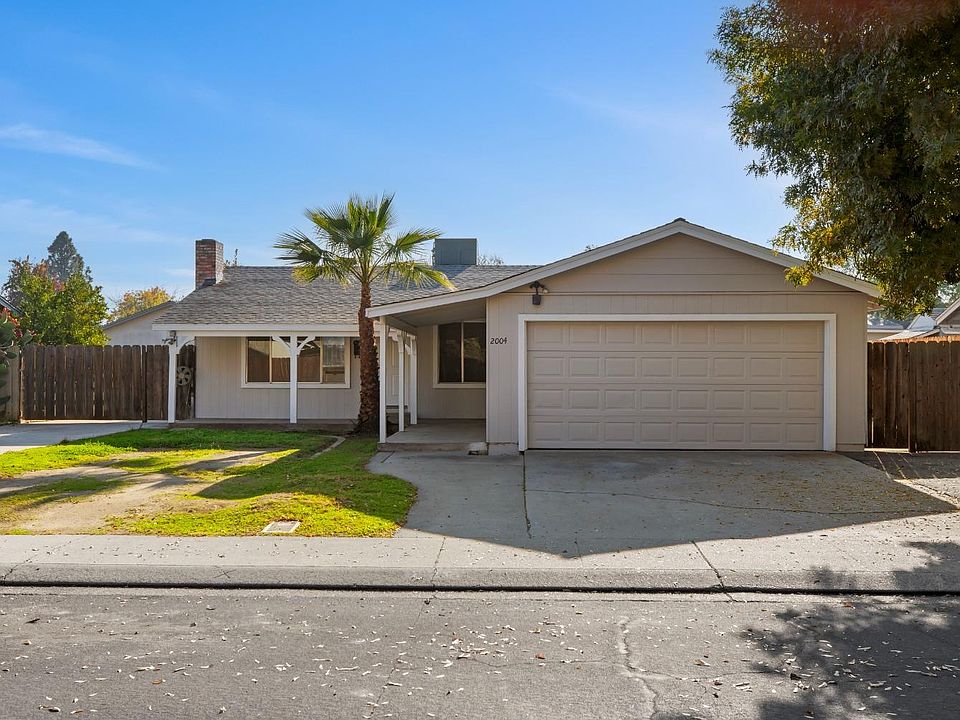 Welcome to 2004 Applegate Dr, Modesto! This charming 3-bedroom, 2-bathroom home offers 1,056 sqft of comfortable living space, perfectly nestled on a 6,840 sqft lot in the heart of Modesto. Step inside to be greeted by the natural light streaming through thoughtfully placed windows, illuminating the freshly painted interior that enhances the home's airy and inviting aesthetic. The kitchen is a culinary delight, featuring stainless steel appliances, all-white cabinetry for ample storage, and seamless direct access to the backyard, perfect for blending indoor and outdoor living. The primary bedroom boasts its own en-suite bathroom, offering a private retreat within this lovely home. Outside, the backyard is a blank canvas, ready for your personal touch. Whether you dream of creating a lush garden oasis or installing a cozy covered patio, the possibilities are endless. Don't miss the chance to make this gem your own!
