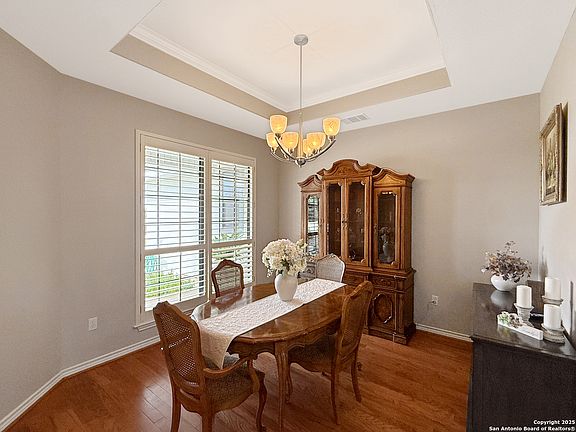 Experience comfort and convenience in this beautifully maintained 3-bedroom, 2-bath home located in The Meridian, a private, gated 55+ community. Offering 1,903 sq. ft. of living space, this residence features an open floor plan, a 2-car garage with a workshop area, and meticulous landscaping that enhances its curb appeal. The spacious covered back porch and outdoor pizza oven make entertaining a delight. Inside, every detail has been thoughtfully curated - and the home comes fully furnished, with all contents negotiable. The HOA maintains the yard, ensuring a low-maintenance lifestyle, while you enjoy peace and quiet in this desirable neighborhood. Conveniently located near the local hospital, shopping, and dining, The Meridian offers the perfect blend of tranquility and accessibility. Don't miss your chance to own this move-in-ready gem designed for relaxed Hill Country living.