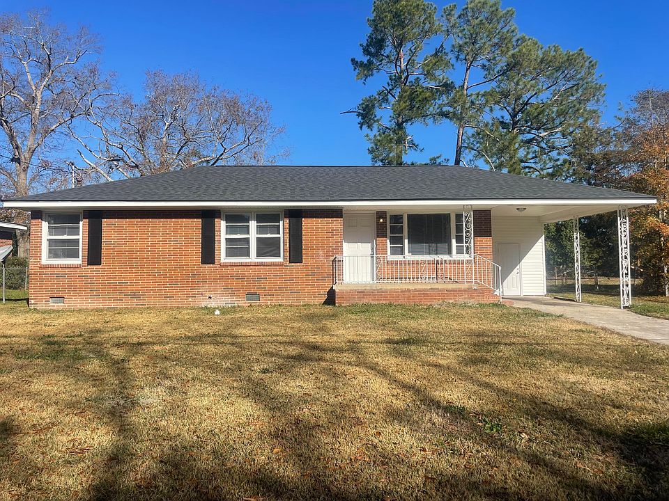 Spacious 3 bedroom brick ranch with attached carport and fenced back yard with covered patio. Brand new roof! Great rental property or starter home!