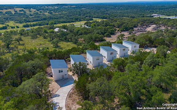 Welcome to a secluded community of six brand new homes located in the heart of Spring Branch close to 46 and 281. These thoughtfully designed residences offer the perfect balance of peaceful Hill Country living with the convenience of being minutes away from shopping, restaurants and 281. Each home features 2 rooms, one bedroom, bathroom and one upstairs loft. The home also has an open concept for the kitchen and living room with 20 foot vaulted ceilings. Enjoy your morning coffee or unwind in the evening