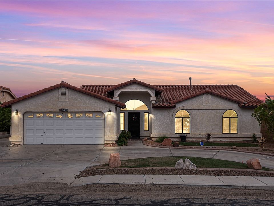 Located at 2004 E Hammer LN, Fort Mohave, Arizona, this single-family residence in Mohave County presents an attractive property in great condition, ready to welcome you home. The living room, graced with a fireplace and vaulted ceiling, invites you to unwind and relax in a space designed for comfort and tranquility. Imagine evenings spent by a cozy fire, with the soaring ceiling enhancing the room's spaciousness and creating an airy, open atmosphere. The kitchen is a chef's dream, featuring stone countertops and a kitchen bar that offers a perfect spot for casual dining or entertaining. A thoughtfully designed backsplash complements the countertops, adding a touch of elegance, while the kitchen peninsula provides additional workspace and storage. The primary bedroom is a private retreat, complete with an ensuite bathroom that offers a personal sanctuary. The bathroom features a tiled walk-in shower, creating a spa-like experience. Outside, the property features a pergola and patio, providing an idyllic setting for outdoor gatherings and relaxation. The fenced backyard offers privacy and security, while the shed provides ample storage space for tools and equipment. A circular driveway adds to the property's curb appeal, and the tiled roof adds a touch of Southwestern charm. This 3-bedroom, 2-bathroom home with an open floor plan is an opportunity to embrace a lifestyle of comfort and convenience, offering a perfect blend of indoor and outdoor living.