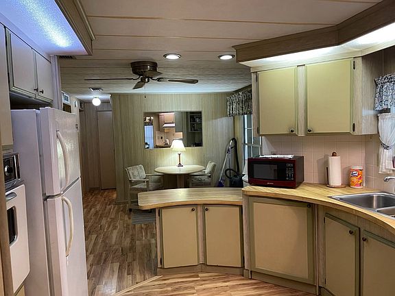 No lot rent here. Buy your share and own your own lot thru Co-op. This home has a very nice floor plan but needs improvements. 2 bed 2 bath in Zellwood Station. Move in, enjoy all the amenities this community has to offer and renovate at your convenience. 72 Par golf course, 4 Community pools, pickle ball and tennis courts, abundance of activities, Whistle Stop Restaurant and Lounge with banquet facilities. There is always something to do here. Gated community close to 429 for easy access to airports and attractions. Call today for your personal tour!