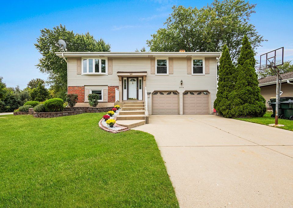 Welcome to 2004 E Parkview Cir, a beautifully updated raised ranch on a desirable corner lot in Hoffman Estates. Backing onto Hilldale Golf Club, this four bedroom, two bathroom home offers modern updates, comfort, and an unbeatable location. Inside, you'll find new floors, fresh trims, updated bathrooms, and energy saving windows throughout. The kitchen features brand new stainless steel appliances, while an upper level addition adds extra living space and a generous walk in closet in the master bedroom, offering the perfect opportunity to create a future master en suite. The lower level provides an additional storage room, a general area, a bedroom or office, and a full updated bathroom. The private patio overlooking the golf course sets the stage for relaxing and entertaining. Additional highlights include a Tesla charger and new remote opener in the garage, along with a new furnace, A/C, and water heater, all covered under ABC Cooling's quarterly maintenance plan. With thoughtful upgrades and family friendly features, this home is move in ready and designed for lasting comfort.