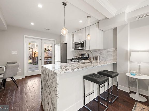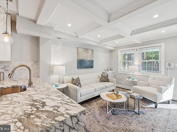 Behind its inviting front porch lies a jewel box of design—big on style and charm. Through the front door, you’ll find a spacious living room with a coffered ceiling, and a seamless flow from living to kitchen, making the most of every inch. The kitchen shines with marble counters, stainless-steel appliances, and a breakfast bar perfect for morning coffee or evening conversation. The breakfast nook is great for everyday dining or dinner parties and game nights. Step through French doors to a private back deck—ideal for dining al fresco or unwinding after the workday. Upstairs, find two serene bedrooms. The primary makes a statement with a vaulted wood beamed accented ceiling. The en-suite bath features stunning tile work. The 2nd bedroom features a back deck for relaxing or working from home while enjoying the fresh air. The hall bath with a soaking tub completes the upper level. Enjoy outdoor living from front to back with a welcoming front porch, a back deck, an upper back deck, as well as a fenced-in hardscaped yard for parking or outdoor enjoyment. The off-street parking with alley access is a welcome convenience in the city. Located in the Kingman Park area Capitol Hill, 2004 E St NE offers a quiet residential feel with easy access to DC’s favorite spots. Stroll or bike to Kingman Island, Rosedale Recreation Center, and The Fields at RFK. Nearby Eastern Market, H Street Corridor, and Union Market bring endless dining and shopping options, while the Stadium-Armory Metro, RFK Farmers Market, and multiple bus routes make commuting effortless.