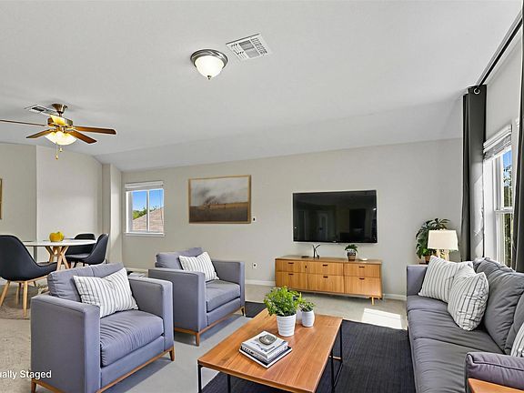Just reduced! Don’t miss this incredible opportunity to own a spacious, move-in ready home in the vibrant Hills at Bear Creek community of South Austin. With 4 bedrooms, 3.5 baths, and 2,496 sq ft, 2004 Garretts Way offers comfort, style, and unbeatable value. Step inside to discover wide-plank wood flooring, soaring ceilings, and oversized windows that flood the home with natural light. The open-concept layout connects living, dining, and kitchen areas seamlessly—perfect for everyday living and entertaining. The kitchen features granite countertops, shaker-style cabinetry, stainless steel appliances, and a large breakfast bar ideal for morning coffee or casual meals. Upstairs, a 400+ sq ft flex space and dedicated media room provide versatile options for a home gym, office, playroom, or movie nights. Each bedroom is generously sized, and the bathrooms are well-appointed for function and style. Step outside to your private backyard retreat with a covered patio, extended hardscape, and plenty of grassy space for gardening, pets, or play. The community pool and playground are just a block away, making outdoor fun easily accessible. Enjoy fast access to SH-45, Mopac, and I-35, and you're less than 10 miles from downtown Austin. Nearby hotspots include Southpark Meadows, local greenbelts, restaurants, and top-rated schools. With a low 1.6% property tax rate, this home delivers exceptional affordability in one of Austin’s most desirable areas.