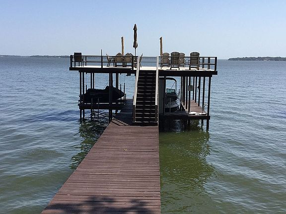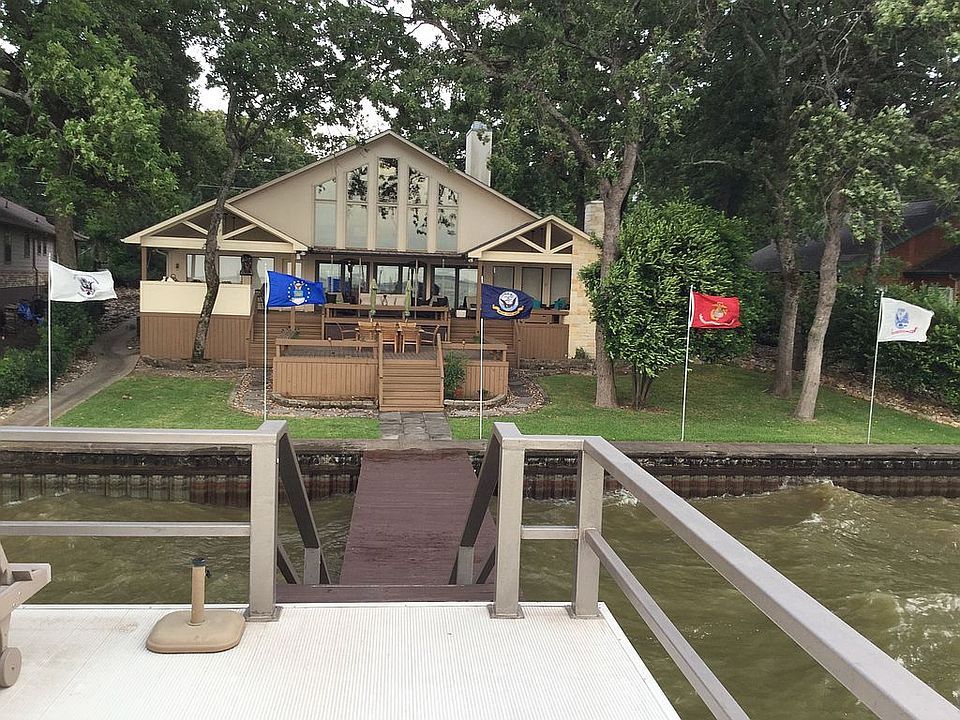 A short 55-mile trip from downtown Dallas leads to this waterfront home on 100 feet of open water located on the west side of Cedar Creek Lake with north east lake view. That means superb sunrises and backyard shade by noon cast by the trees and the porches! All rooms have fantastic and relaxing lake views. This home has 2 bedrooms each with king sized beds with a lake view, built in storage units, and walk in closets. The large open loft with a stunning view of the lake has two queen sized beds that convert to futons, a bathroom with tiled shower, and an office space. The house comfortably sleeps 6-8 people. There are two bathrooms down, with the master that has a jetted tub, updated tiled, waterfall shower and granite counters. The guest/day bathroom has a walk in tiled waterfall tiled shower with bench and granite counters. The loft bathroom has tiled shower. Downstairs, the kitchen has expansive granite counters for entertaining and adjoins the living area with three large Pella doors that open to the covered porch areas. The kitchen has new stainless steel LG appliances to include, stove/range, dishwasher, refrigerator, microwave and a Sonic-style ice-maker. Adjoining the kitchen is a laundry area with an LG washer and dryer that leads to the garage. There is abundant storage in the kitchen along with two pantry closets. The open living room with cathedral ceiling has an indoor fireplace and built in entertainment unit. The covered porch has three areas. A central porch that looks out on to the lake and boat house. Off to the left is a nook with a cozy fireplace. To the right is an outdoor kitchen with granite counters and seating for six, along with a sink, gas grill, refrigerator and ice-maker. Steps on each side of the porch lead down to a 500 square foot uncovered deck that is great for entertaining large parties and dancing. There is seating for 30+ people on the wooden benches. A few steps down from the lower deck is the 8’ wide pier that leads to the boathouse with a boat lift and two jet ski lifts along with a storage unit. Over the boat house is the 800 square foot aluminum floored party deck with LED dimmable lighting. The yard is landscaped for low and easy maintenance and uses water from the lake for the 3-zone sprinkler system that was upgraded in 2014. An attached oversized two-car garage with epoxy floor has custom lockable storage cabinets. Over the garage is an attic storage area accessible via a pull down stairway. There is also storage outside under the deck porches, as well as a separate work/tool shed on the north side of the house. The house is heated and cooled by two heat pump units added in 2016. A 3-ton unit takes care of the south side of the house and 2-ton unit takes care of the north side of the house. Two new, efficient 50-gallon water heaters were added in 2015 and are housed in cabinets in the garage. Water and sewer are supplied by West Cedar Creek Municipal Utility District. Electric is supplied by a Trinity Valley Electric Cooperative. Cable TV and Internet choices are currently Suddenlink and CenturyLink companies. This house can be a great short-term rental house. There is no POA or HOA.