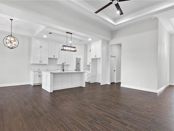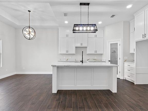 This new construction features an open-concept layout with high ceilings, abundant natural light, and a designer ceiling fan in the main living area. The kitchen includes quartz countertops, custom cabinetry, a walk-in pantry, and a large center island ideal for meal preparation and entertaining. The primary suite offers a spacious walk-in closet, double vanity with a full-width mirror, and a walk-in shower with contemporary tile finishes. Each bedroom is designed for comfort and includes its own walk-in closet and modern fixtures. Additional highlights include energy-efficient storm windows, recessed LED lighting, smart-home wiring, and a front-entry garage. Experience the convenience and sophistication of new construction living in one of Mission’s premier gated communities. Schedule your private tour today.