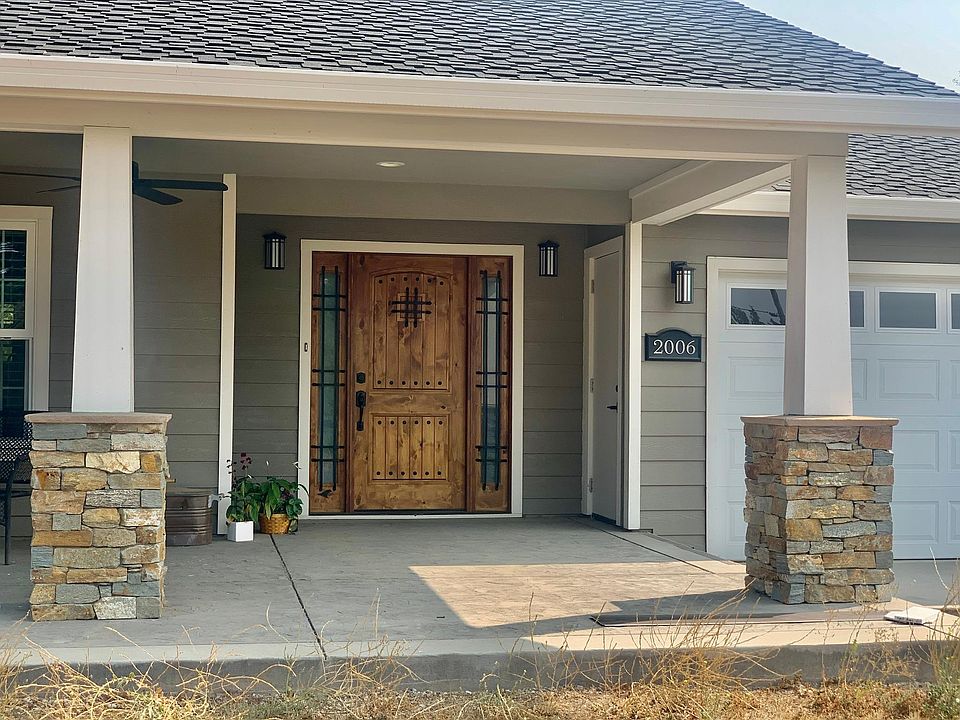 Newly built home on 5 acre ranch. If you love the serenity and safety of country living you have found the perfect home. The back of this beautiful house faces our barn which is home for pet horses, mini horses, goats and pigs. A beautiful covered front porch is right off the master bedroom as well as a back patio off the living area. Kitchen is outfitted with upgraded stainless steel appliances including a gas range for all those that love to cook! The main house which is also on the property is occupied by the easy going owners so we would love a couple/family that would like to call this place their own. Currently it's an empty slate with landscaping so the gardening lovers will be in heaven. Home can be rented furnished if needed. If you are a horse owner that dreams of having your horse right out your back door we can make that happen. (Can be discussed) Gas, electric and garbage included. (For those that like their home like a sauna in the winter and a freezer in the summer there may be an extra cost) Internet is already set up but not included. Cable TV can be set up by renter. Entire property is smoke free. Dogs negotiable. No cats as we have barn kitties on the property that are very friendly but do not like other cats on their turf.