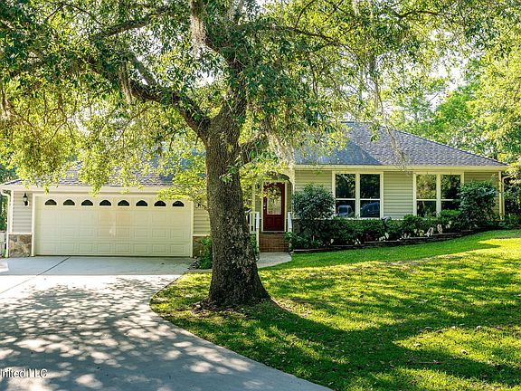 Escape to this private oasis on 2.7 acres with deep water access and breathtaking views of the Mississippi Sandhill Crane National Wildlife Refuge! This stunning property is located in the highly sought-after Castelle Bluff development, which features large wooded and private lots and well-established custom homes.