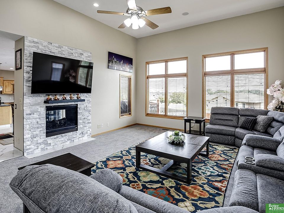 With over 4,000 sq ft of pure comfort & style in this stunning 1.5-story home on a spacious lot, you are sure to be WOWED! The gorgeous kitchen impresses with tile floors, birch cabinetry, granite counters, a large island, stainless steel appliances, a pantry, & a handy workstation. Gather around the striking double-sided stone fireplace that warms both the dinette & the grand living room with soaring ceilings. A formal dining room sets the stage for memorable meals, while the main-level primary suite offers a whirlpool tub, walk-in closet, & private retreat. Upstairs, you'll find three bedrooms, one with its own ¾ bath & a versatile loft perfect for a closet, office, or lounge. The walkout basement is built for entertaining with a projector & screen, buffet area, & another ¾ bath. Epoxy floors shine in the 3-car garage, & the freshly stained deck overlooks a fully fenced, flat backyard, perfect for enjoying sunrise & sunset views. Pre-inspected & move-in ready, this one has it all!