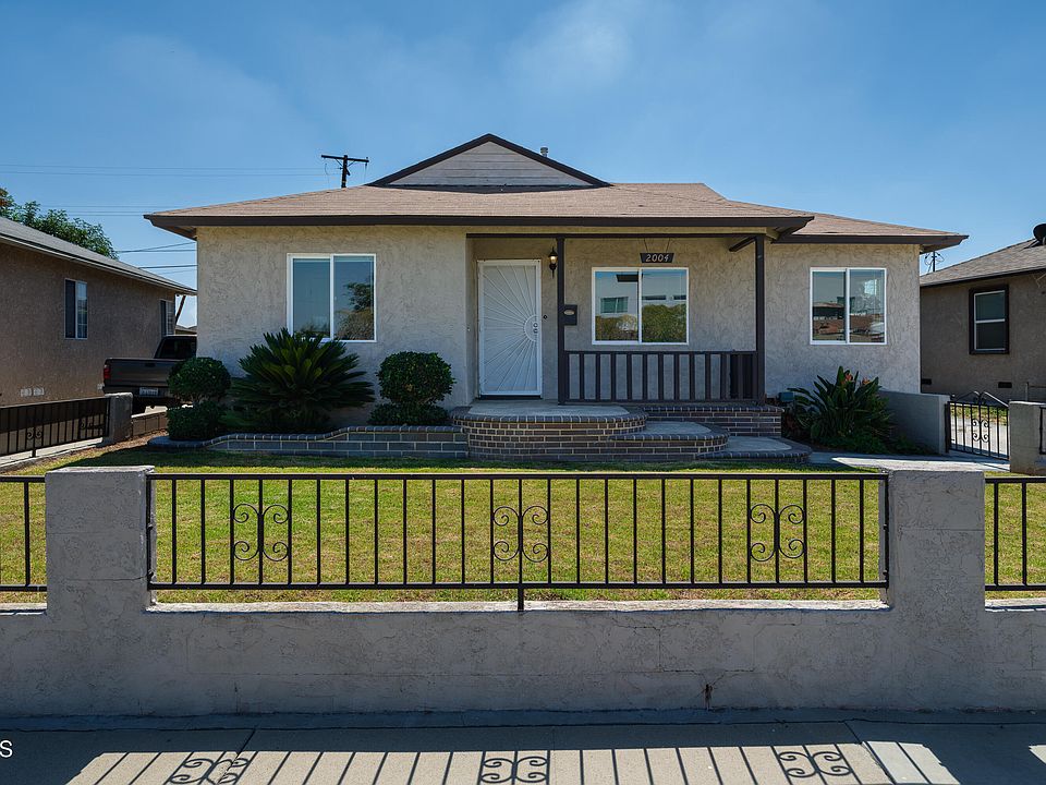 Welcome to this updated home in Compton that features 5 bedrooms, 3 bathrooms, spacious living spaces, and a detached two-car garage! Curb appeal exudes with the picturesque exterior, the well-maintained front lawn, and the covered porch. Past the front door, one is struck by the layout of the home that showcases a large living room and dining room which have laminate floors and base molding and large windows that allow for natural light to enter the home. The dining room seamlessly opens to the kitchen which features tile floors, recessed lighting, granite countertops, mosaic tile backsplash, built-in features, double sinks, and an abundance of cabinets. Conveniently next to the kitchen there is a lovely breakfast nook that features recessed lighting, a large window, and a door that leads to the backyard patio. Perfect for hosting and gatherings, this home has an oversized family room in the center of the home that features two ceiling fans and a sliding glass door that leads to the backyard which is perfect for indoor/outdoor California living! On the other side of the home sits the 5 well-sized bedrooms that all feature carpet floors, base molding, large windows, and large closets. The home also has 3 large hallway bathrooms that feature tile floors, base molding, and pedestal sinks. In addition, the hallway is equipped with additional cabinets for storage. At the end of the long hallway, there is also a laundry room that has washer and dryer hookups. The backyard features a patio area, a grassy area for recreation, and a 2 car garage. There are many things to love about this updated home, from the spacious living spaces for hosting and entertaining to the well-sized bedrooms! You won't want to miss the opportunity to call this spacious home yours!