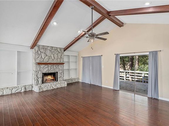 Discover this stunningly move-in home, a perfect blend of modern comfort and classic charm, nestled in the highly sought-after Hickory Ridge subdivision. This home offers an impressive mix of flexible living spaces and contemporary updates, ideal for today's buyer. The moment you enter, you're greeted by an expansive open-concept layout with gleaming hardwood floors. The main living area features soaring vaulted ceilings with wood beams, a striking stone fireplace, and built-in bookshelves. Large windows and glass doors flood the space with natural light and provide seamless access to the large back deck, perfect for indoor/outdoor entertaining. The efficient kitchen is designed for both function and style, featuring ample cabinet and counter space, modern stainless steel appliances, and tile flooring. It opens to a bright and spacious breakfast room with a charming bay window, while a formal dining room provides an elegant setting for dinner parties. The oversized primary suite, conveniently located on the main floor, is a true sanctuary. It boasts abundant natural light from large front and rear windows and a private balcony, offering your own peaceful escape. The en suite bathroom offers a double vanity with plenty of storage and a tub/shower combo, and the enormous walk-in closet includes custom shelving for all the space you need. The downstairs is a massive bonus, offering three additional spacious bedrooms with great closet space and a full bathroom. This entire level features low maintenance custom concrete flooring. A separate living area on this floor is a true gem, providing a versatile space that can serve as a media room, game room, home gym, or office for a work-from-home lifestyle. Don't miss your chance to own this one-of-a-kind home. Buyer to verify all information during due diligence. This is an equitable interest listing where seller is selling only an option contract or assigning an interest in acontract, such as a purchase and sale agreement or a contract for deed. In this situation, the seller does not have legal title to the property, but the equitable interestgives seller the right to acquire legal title.