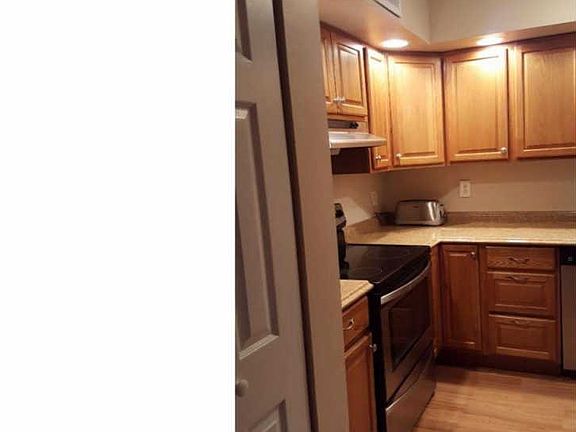 Well maintained interior townhouse with fresh neutral paint throughout, upgraded fixtures, laminate wood flooring on main level and wall to wall carpet upstairs. Main level features half bath, separate dining room area, upgraded L shaped kitchen with recessed lighting and living room with wood burning fireplace, recessed lighting and door to the rear deck. Upstairs Master bedroom has private bath, full bath in hall and additional two bedrooms. Unfinished basement with laundry. Oil heat and central AC. Two parking spaces in front of property. Tenant is responsible for all utilities, lawn care and snow removal.